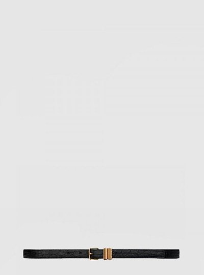 부드러운 가죽 소재의 타원형 버클 슬림 벨트 756409
